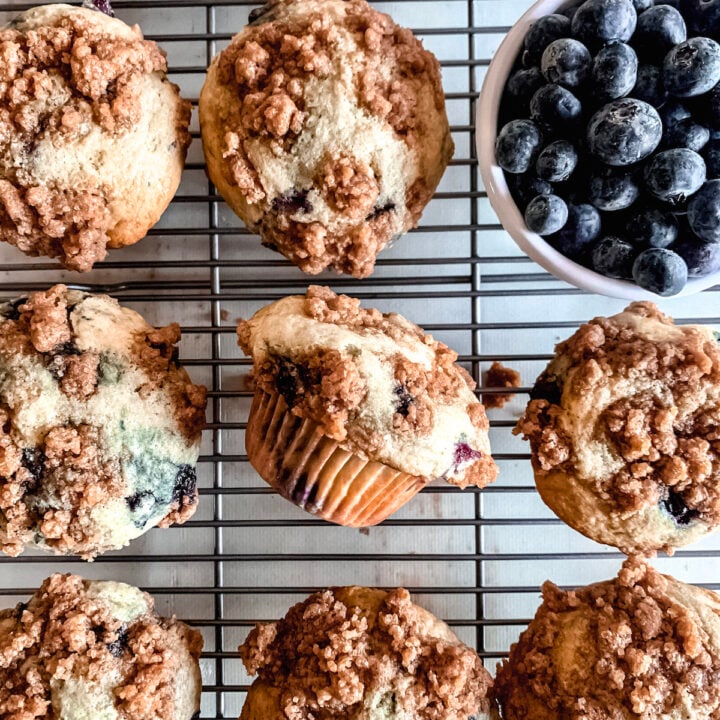 Tender, fluffy with a crunchy top and bursting with blueberries, these Buttermilk Blueberry Muffins will be the star of your holiday brunch menu.