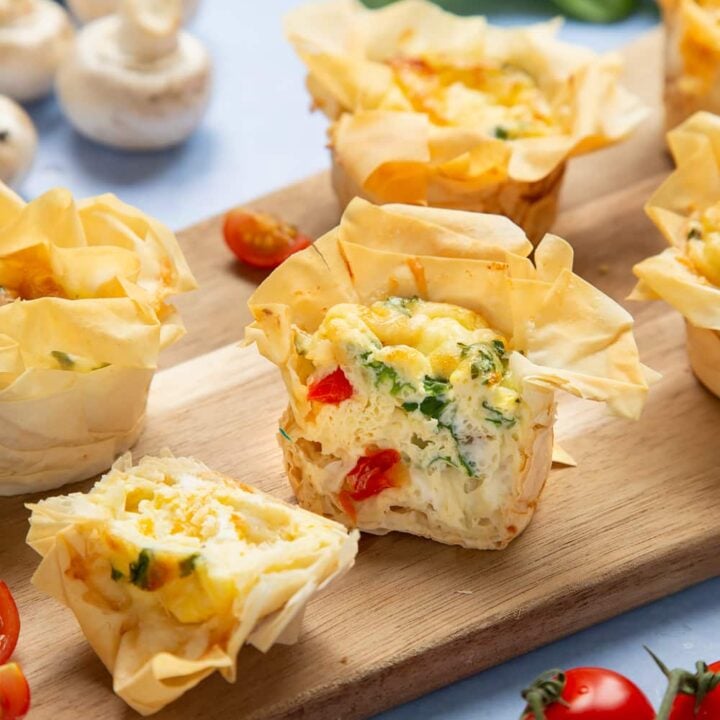 Individual size, creamy and delicious egg-quiche, all wrapped up in filo pastry cases!