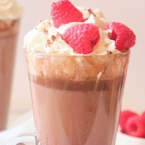 Learn how to make this delicious milk chocolate raspberry hot cocoa recipe. The warm chocolate drink is the perfect way to warm up on a cold winter day.